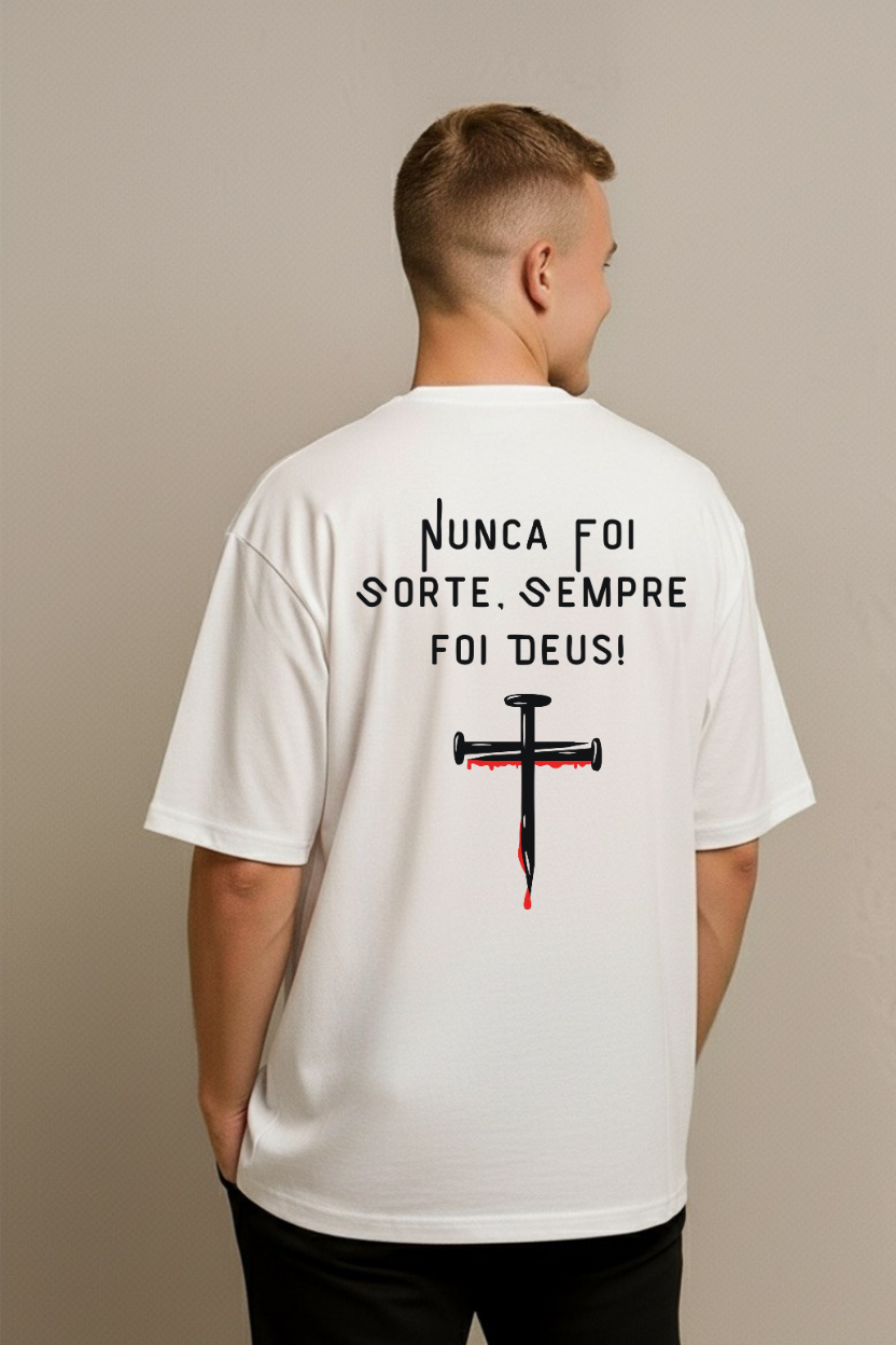 CAMISETA OVERSIZED NUNCA FOI SORTE SEMPRE FOI DEUS