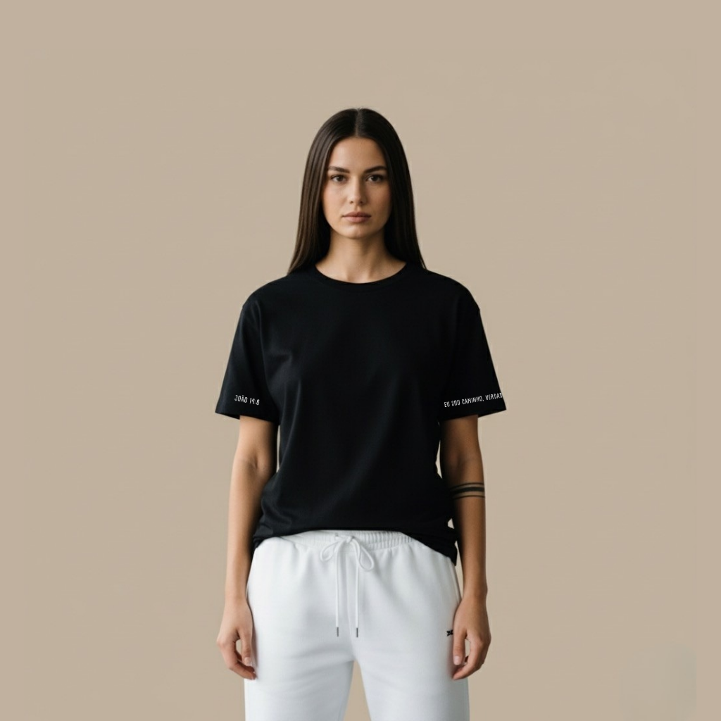 Produzida em 100% algodão fio 30.1 penteado, a camiseta oferece um toque suave, respirabilidade e resistência incomparáveis. Cada peça passa por um acabamento premium, garantindo que mantenha sua forma, cor e conforto mesmo após muitas lavagens.